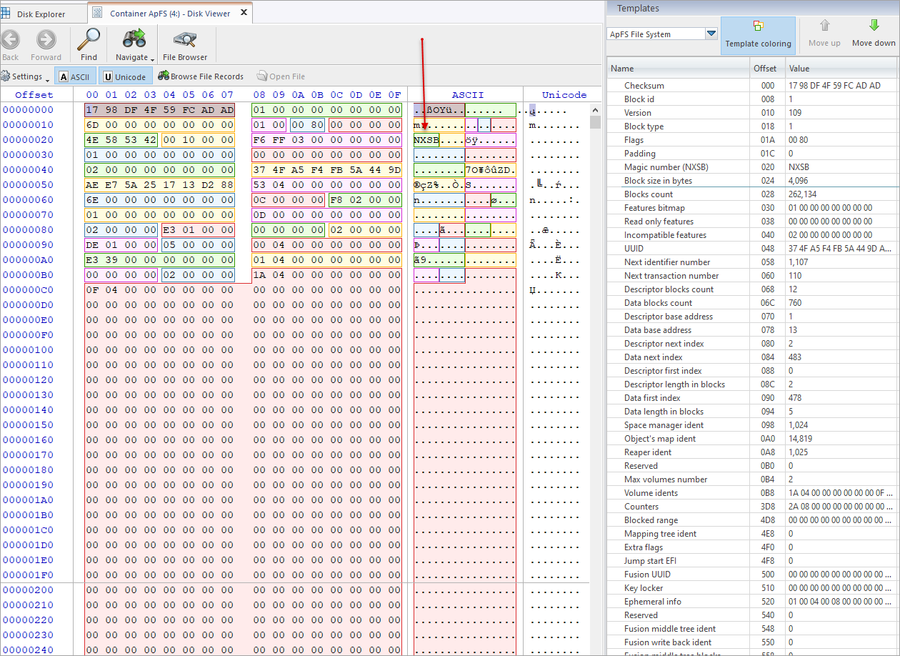 eApFS_ObjectType_01_SuperBlock = 0x0001, // Container Superblock