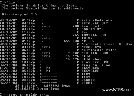 Recovering NTFS boot sector on NTFS partitions (Q153973)